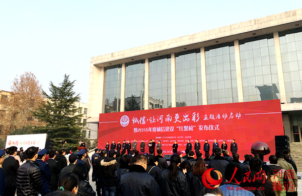2016年12月30日,由省委宣傳部、省文明辦等15家單位聯(lián)合舉辦的“誠信·讓河南更出彩”主題活動啟動暨2016年度誠信建設(shè)“紅黑榜”發(fā)布儀式在鄭州市舉行。